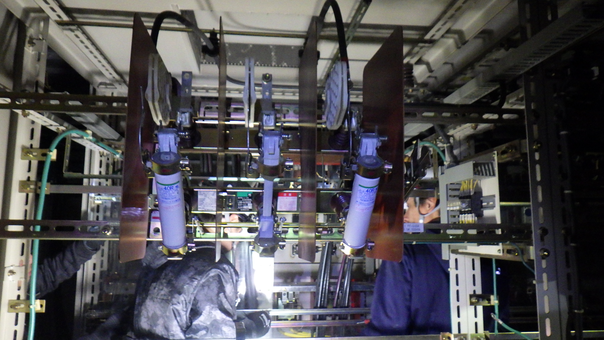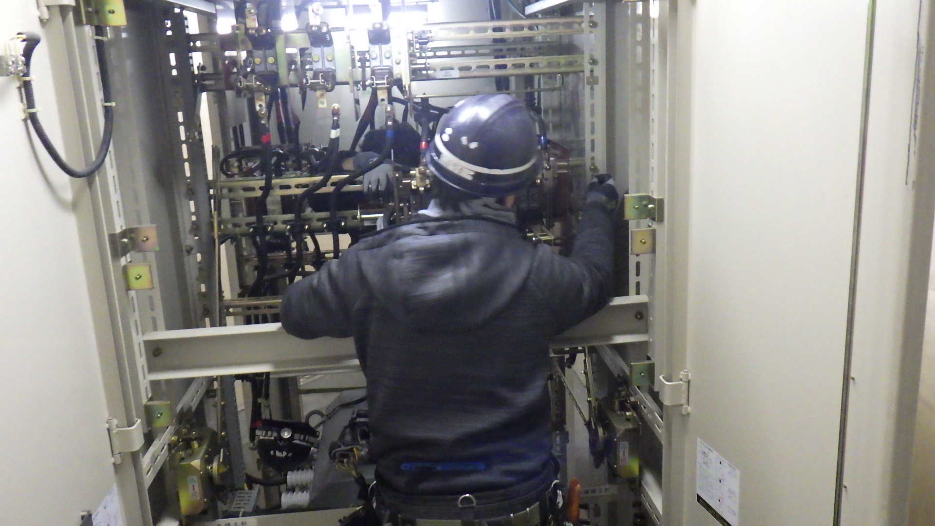 今回、地下にある電気室で高圧機器の取替工事を行いました。作業を進める中で、引込ケーブルの改修に既設管路が使用できないことが判明!!急遽、約100メートル道路を掘削して新たに埋設配管を敷設する工事へと計画を変更することになりました。さらに、地下への搬入出ルートとして階段しか使えない状況で、700キロ程度の変圧器やケーブルの運搬方法を現場で再検討する必要がありました。また、夜間作業ということもあり、非常に難易度の高い現場となりましたが、スタッフ全員が連携し、急なトラブルにも柔軟に対応して無事工事を完成させることができました。